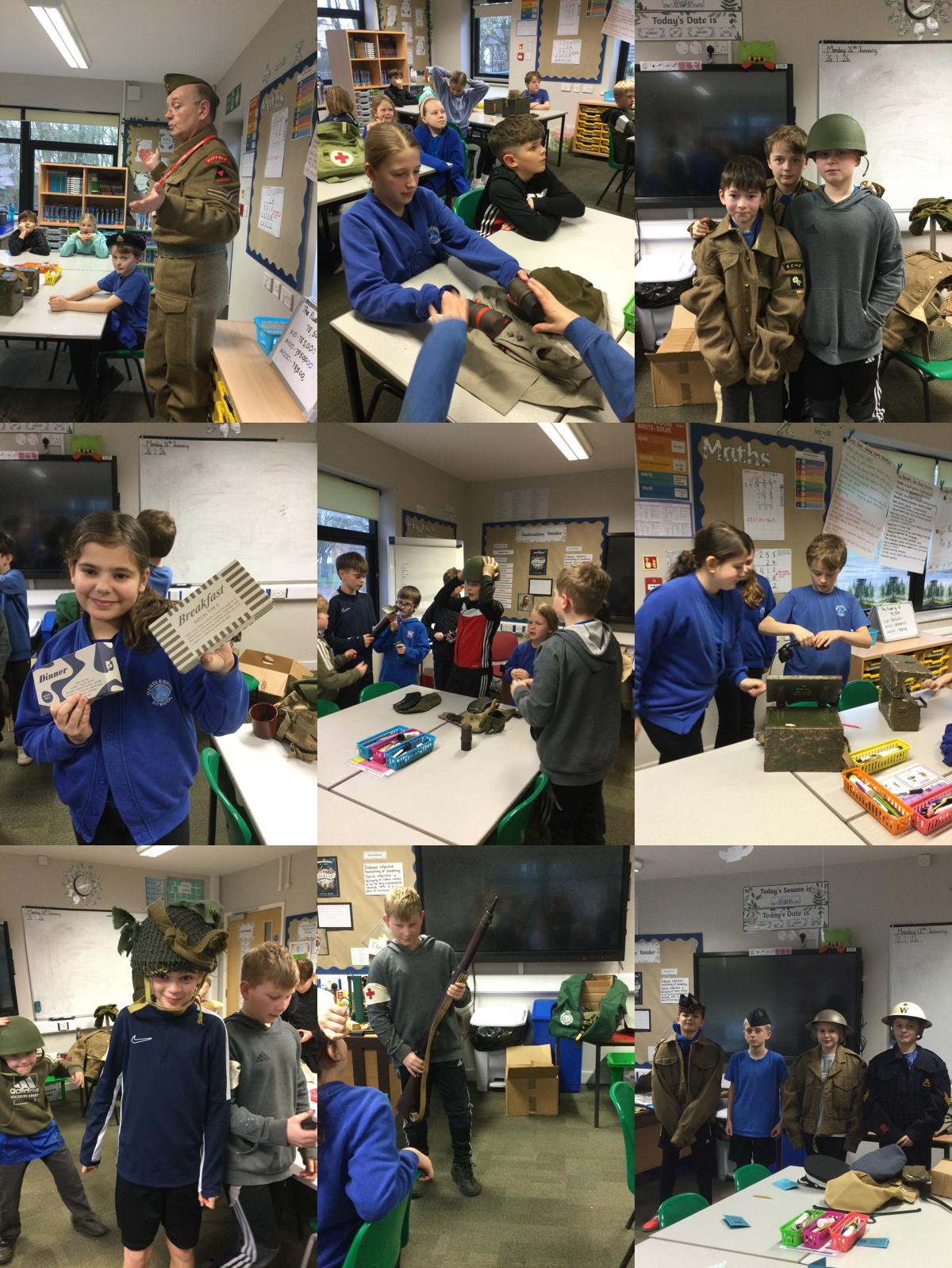 Over the course of the visit, pupils explored life during the war through a range of real and replica artefacts, including weapons, military uniforms, ration cards, newspapers, communication devices and gas masks. They learnt how families coped with rationing, how news was shared during wartime, and how people protected themselves during air raids. Being able to see and handle these items brought history to life and helped pupils gain a deeper understanding of what daily life was like for soldiers and civilians during World War Two.